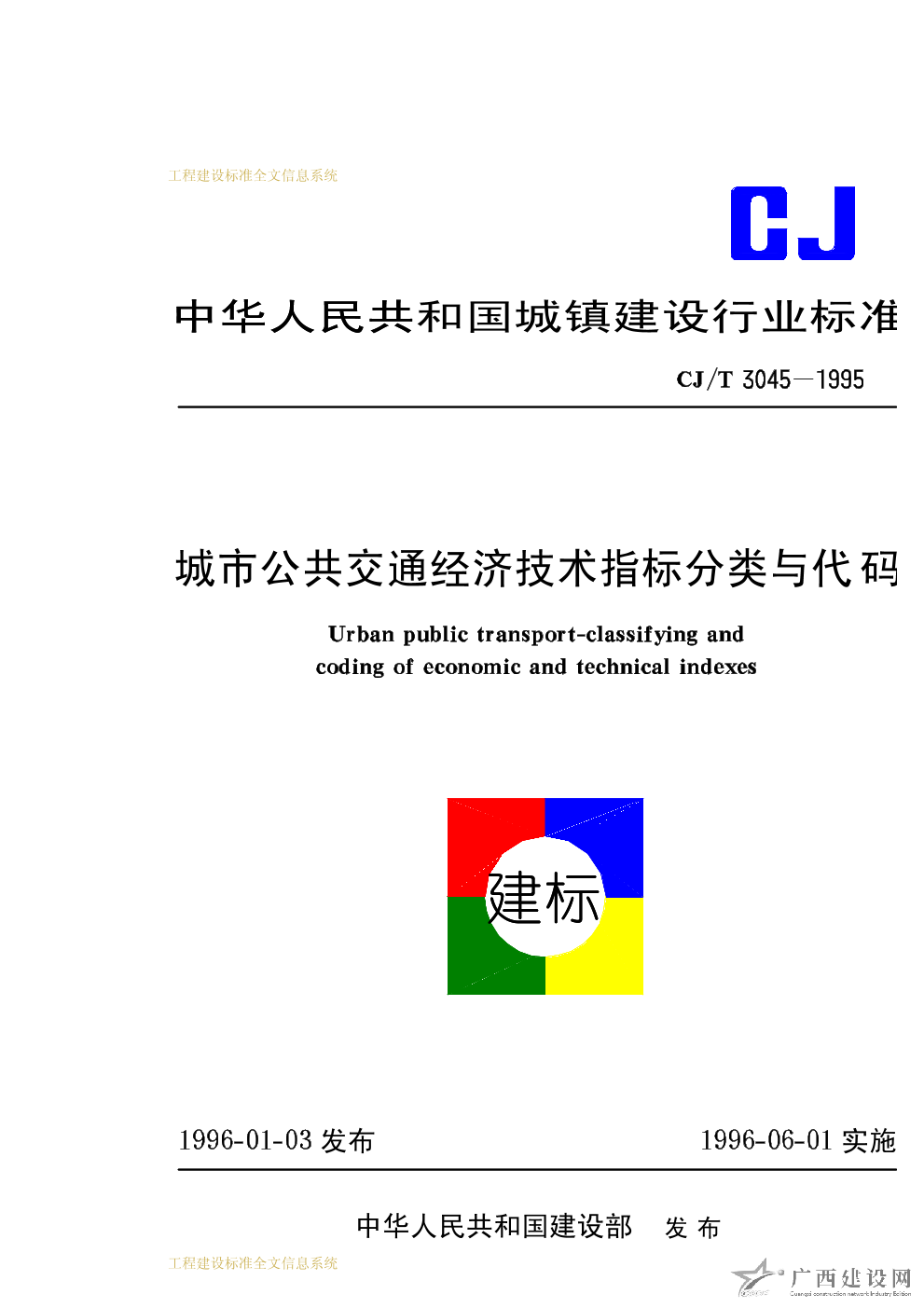 城市公共交通經(jīng)濟(jì)技術(shù)指標(biāo)分類與代碼 CJ/T3045-1995